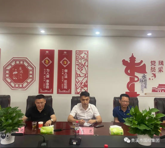 6月9日上午,长城资产江西分公司业务部负责人温涛一行到贵溪调研平台优化升级工作,市政府副市长陈思、国资局领导邱中华、集团总经理江卫锋等陪同调研。 陈思副市长对长城资产江西分公司的到来表示欢迎。集团总经理江卫锋介绍了集团业务发展及整体运营情况,长城资产江西分公司对国控集团在平台优化升级中盘活有效资产,做强融资平台、拓宽融资渠道、规范债务举措、优化债务结构等方面的做法予以了肯定。双方还就平台转型、资产注入、债务化解、盘活存量资产等方面的思路和做法进行了交流探讨。