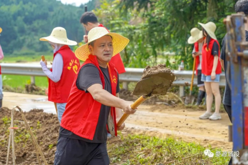 到达许村镇周溪村后,全体党员投入到水毁农田的修复工作中,清除田间砂石污泥,修复受损的田间排灌设施,同时鼓励村民在灾害面前要振作精神、坚定信心,积极开展生产自救。