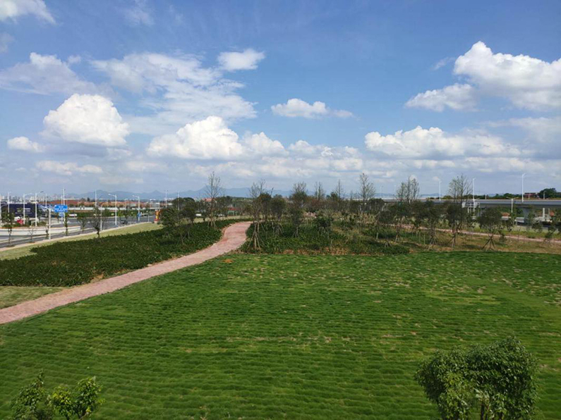 从今年4月开始,集团下属高铁建投公司着力对赣州西站周边14个地块面积近25万平方米的区域开展环境整治工作,提升高铁新区城市品质。针对赣州西站周边地块土壤多为风化岩的现状,组织参建单位专题研究,因地制宜、分类施策,制定有效环境方案,明确责任人、责任区域和时限要求,在短短2个月的时间,克服雷雨天气频发、与铁路正线交叉施工等影响,每天组织近千名施工人员,加班加点,屡克难题,如期完成对机场-西站-凤岗大道高架入口沿线蓉江七路蓉江七路(振兴大道-迎宾大道段)、振兴大道(蓉江七路-客家大道西延段)、新时代大道(振兴大道-凤岗大道)、凤岗大道高架入口周边等共计12个地块近20万平方米区域的复绿工作。以“四季有花、四季有绿”的理念进行设计施工,将原来是裸土、施工单位项目部临时办公场所的原新时代广场改造成占地约5.1公顷的山体公园,香樟、金桂、红叶石楠等近两千棵树木铺满公园,乘客一出赣州西高铁站就有近距离接触大自然的休闲、游憩场所。