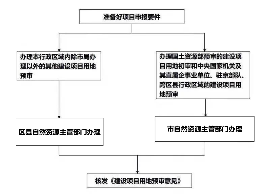 征地工作的报批与审批流程可以简单概括为:区县自然资源主管部门—报区县政府出具征地请示或函—报市自然资源主管部门审核—市建设用地审查小组会审议—报市政府审批