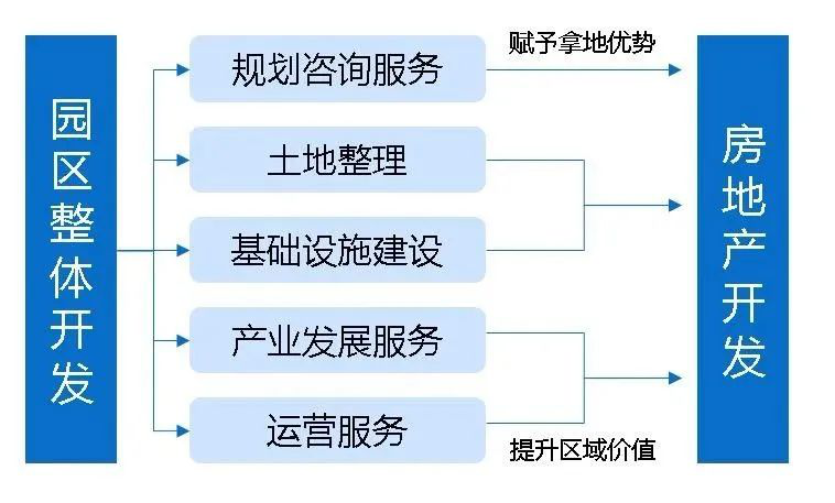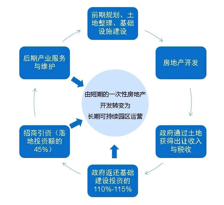 主要盈利模式:一是通过垫付园区前期开发、基础设施建设费,获得政府10%~15%的利息收入;二是园区招商引资返还收入,即园区新增固定资产投资额或新增财政收入的45%;三是园区配套地产开发收入;四是园区土地升值收益。