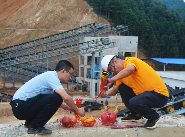 2021年8月12日上午,由石城世界杯官网集团投资建设的石城琉璃坑砂石骨料项目制石生产线上线试投产。