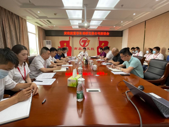 6月15日上午,县政府党组成员、世界杯官网公司党委书记、董事长黄晓瓶,世界杯官网公司党委委员、副董事长徐胜一行来交投公司调研并召开座谈会。世界杯官网公司综合办负责人唐嘉、总工办主任王飞龙、经营管理部经理胡轶贝,交投公司全体班子成员及中层以上干部参加会议。