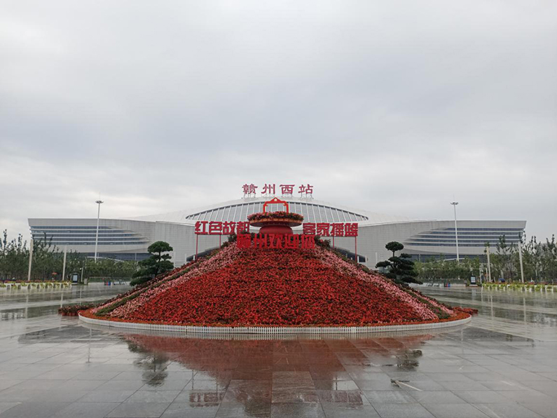为了唱好重头戏,宣传造势全省旅发大会,在高铁站、城市主干道、快速路等开展大会氛围营造,集团下属高铁建投公司联合生态投资公司等单位在赣州西站落客平台、新时代广场设置了1公里的移动花箱,使用近2.3万盆海棠、凤仙花、长春花、向日葵等多种花卉在新时代广场设置造型精美、鲜艳夺人的“红色故都、客家摇篮”“赣州欢迎您”花海,在新时代大道至凤岗大道高架路口近1.5公里道路沿途树穴摆放海棠花、夏瑾花等时令花卉等,充分利用赣州西站和郁孤台街区的LED灯箱、显示屏以及各工程项目围挡、快速路广告牌等多种形式进行多角度宣传,营造“处处都是旅游环境”的氛围。