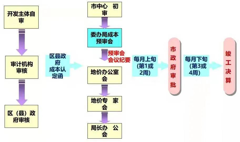 征地工作的报批与审批流程可以简单概括为:区县自然资源主管部门—报区县政府出具征地请示或函—报市自然资源主管部门审核—市建设用地审查小组会审议—报市政府审批