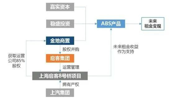 五、以金融退出机制为特色的模式:金地商置金地商置成立于2013年,香港上市公司(535.HK),金地集团成员企业,是一家集地产综合开发和资产管理平台为一体,专业从事商业中心综合体、产业园镇、精品住宅、长租公寓、星级酒店等多元物业的开发销售、投资管理和服务运营的开发商。值得一提的是,在产业地产领域,金地商置完成了我国第一单文创园区ABS——上海8号桥项目ABS,实现产业地产证券化,这也为国内其他产业地产运营商在盈利模式上提供另一条成功的道路。上海8号桥项目由启客运营十余年,商区成熟且租金来源稳定,租金年均增长超过7%,在2016年10月被金地商置收购。金地商置运营一年多的时间后,联合嘉实资本和稳盛投资,以8号桥项目未来租金收入作为支持,于2017年11月在金融市场发行了ABS产品,发行量为4.2亿元,提前变现了未来3.5年的租金收入,成功通过金融手段等一系列操作实现资金的快速回笼。
