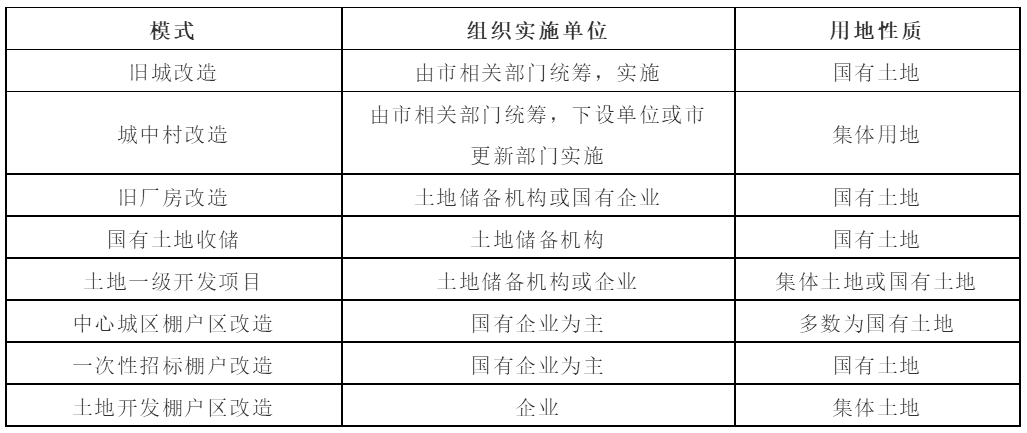 一级开发项目模式具体可细分为八大类:旧城改造项目、城中村改造项目、旧厂房改造项目国有土地收购储备项目、土地一级开发项目、中心城区棚改项目、一次性招标棚改项目、土地开发棚改项目。虽然项目模式名称存在差异,但实际中有些模式只是由于历史原因导致项目模式发生变化,项目性质并未改变。
